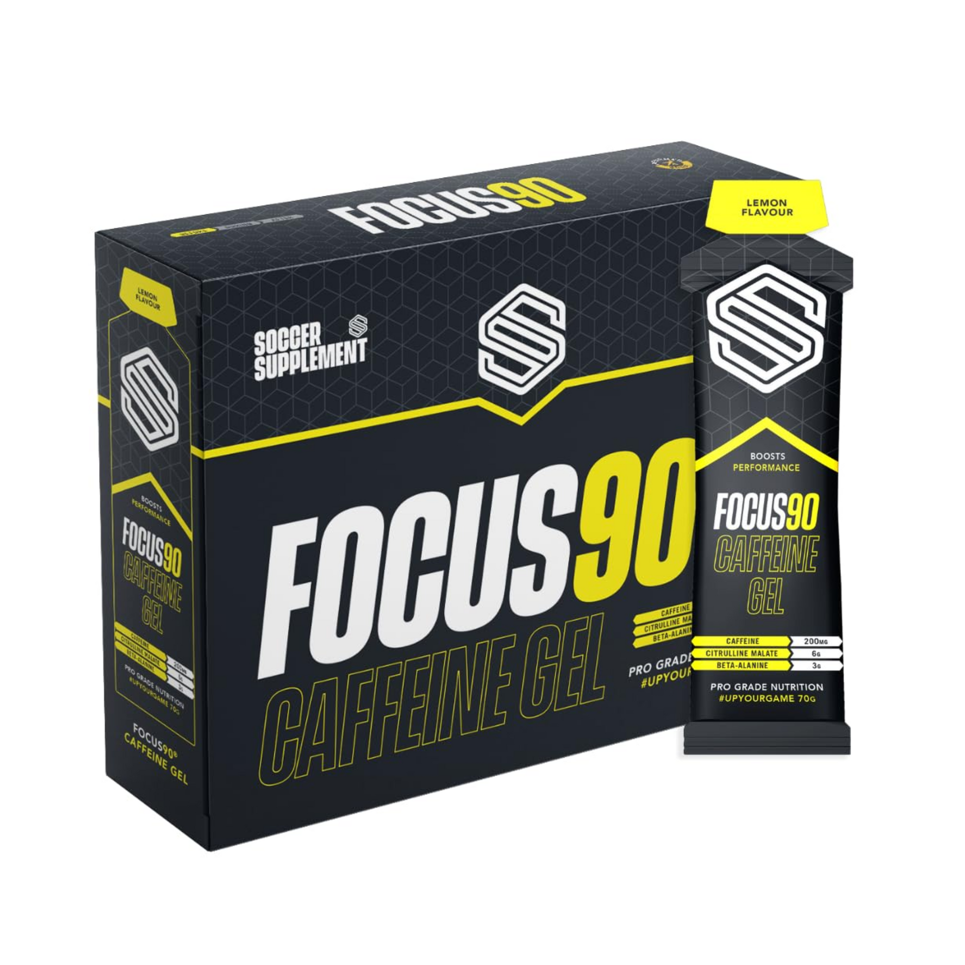 Boost your performance on the field with Soccer Supplement Focus90 Gel. This scientifically-formulated gel provides a 90% concentration of carbohydrates to fuel your body for intense play. With its delicious lemon flavor and convenient 12x70g packaging, it's the perfect choice for soccer players looking to maximize their performance.